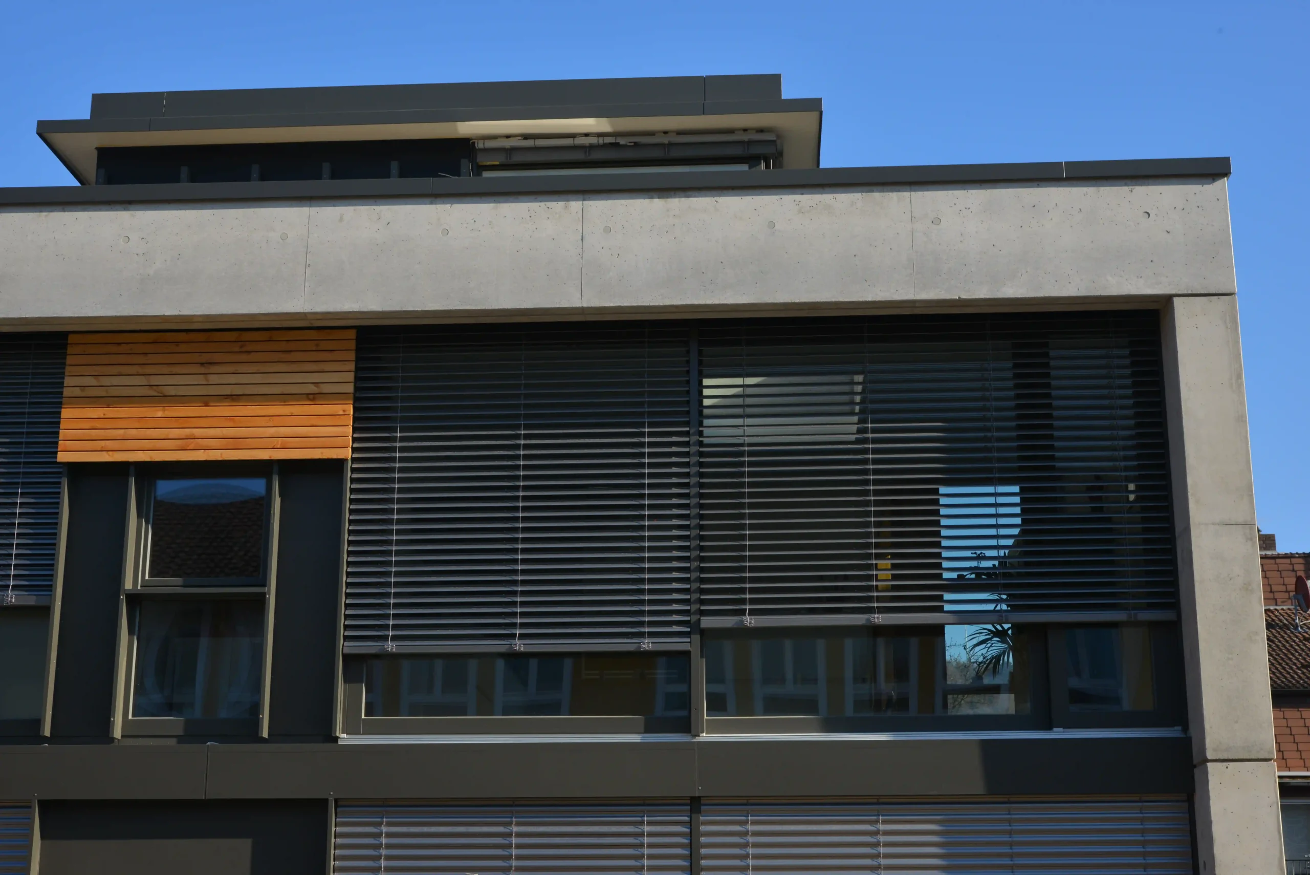 Rollläden, Raffstores und textile Systeme fügen sich harmonisch in Fassade, Fenster und Architektur ein. Materialien, Farben und Bauformen bleiben bewusst zurückhaltend, sodass Funktion und Nutzen im Alltag im Mittelpunkt stehen.